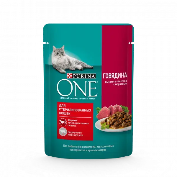 Говядина с морковью, 75г влажный корм для кошек для стерилизованных, Purina ONE