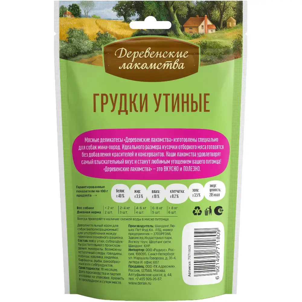 Лакомство для собак Грудки утиные, 55г для мини-пород ДЕРЕВЕНСКИЕ ЛАКОМСТВА