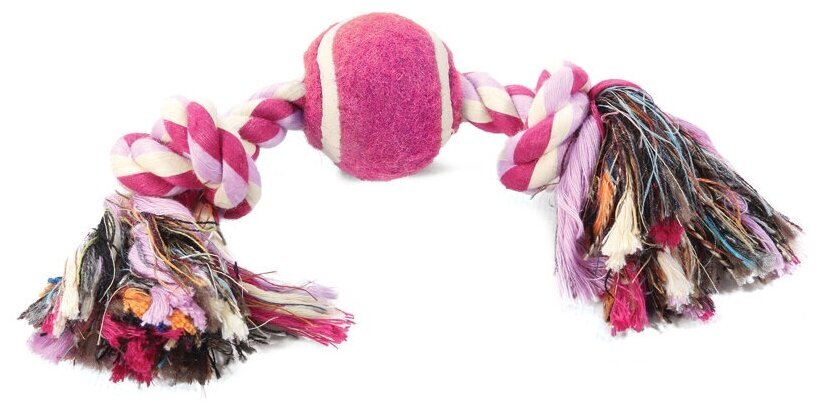 Игрушка для собак мелких пород Верёвка 2 узла и мяч, d38/200мм TRIOL фиолетово-белый