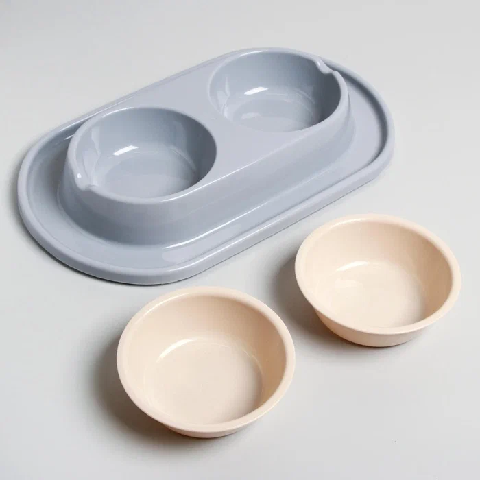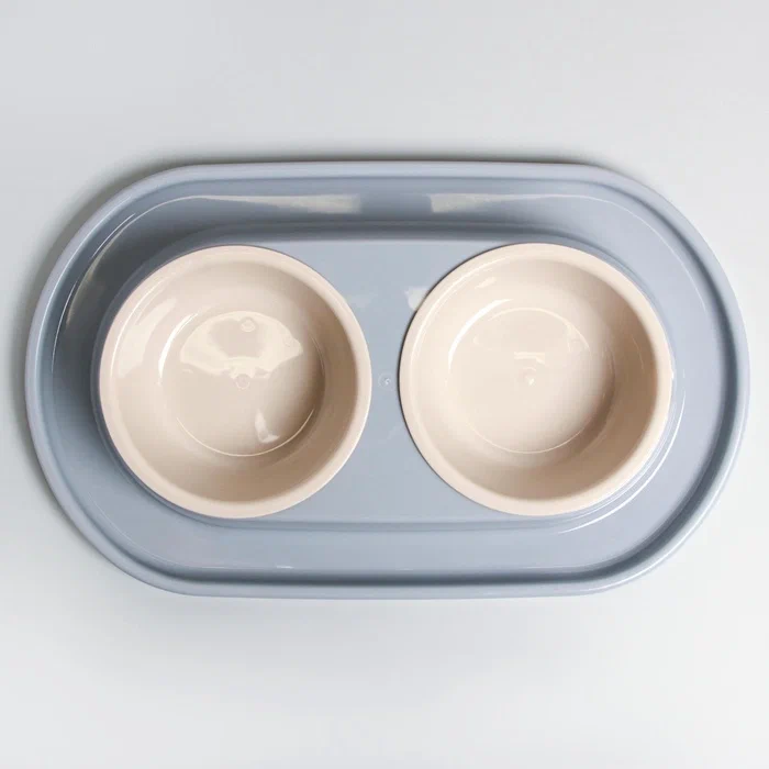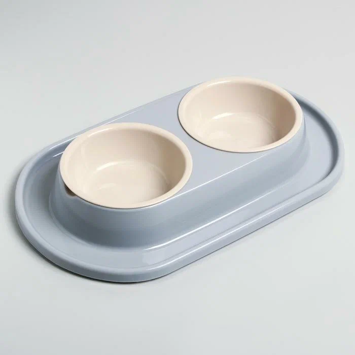 Миска для животных 0.3л двойная, на подставке, серый ALTA