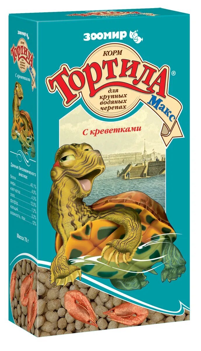 Корм для крупных водяных черепах Зоомир "Тортила "Макс"" с креветками, 70 г