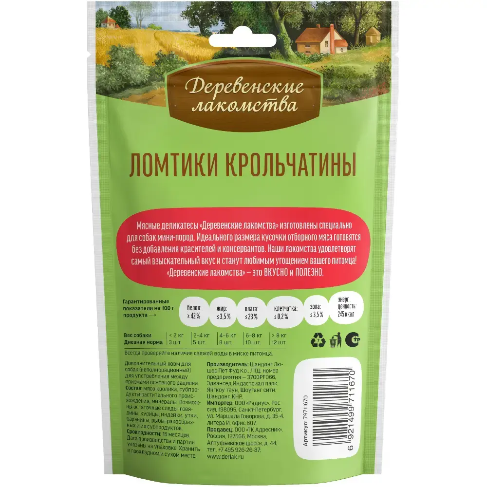 Лакомство для собак Ломтики крольчатины, 55г для мини-пород ДЕРЕВЕНСКИЕ ЛАКОМСТВА