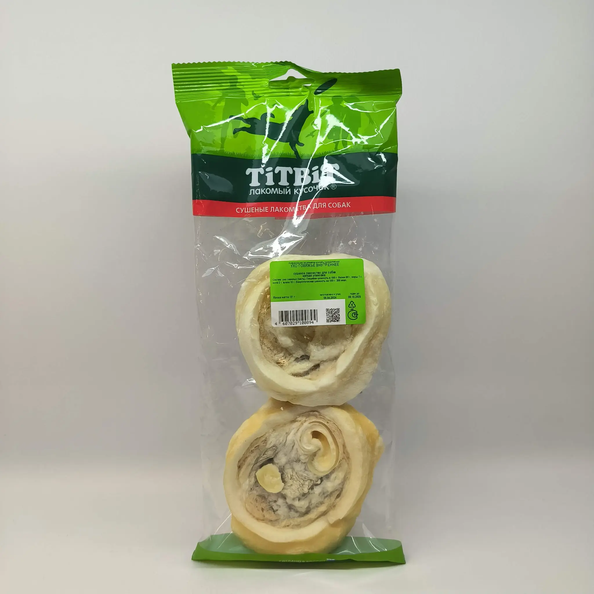 Лакомство для собак TiTBiT Ухо говяжье внутреннее, 81г