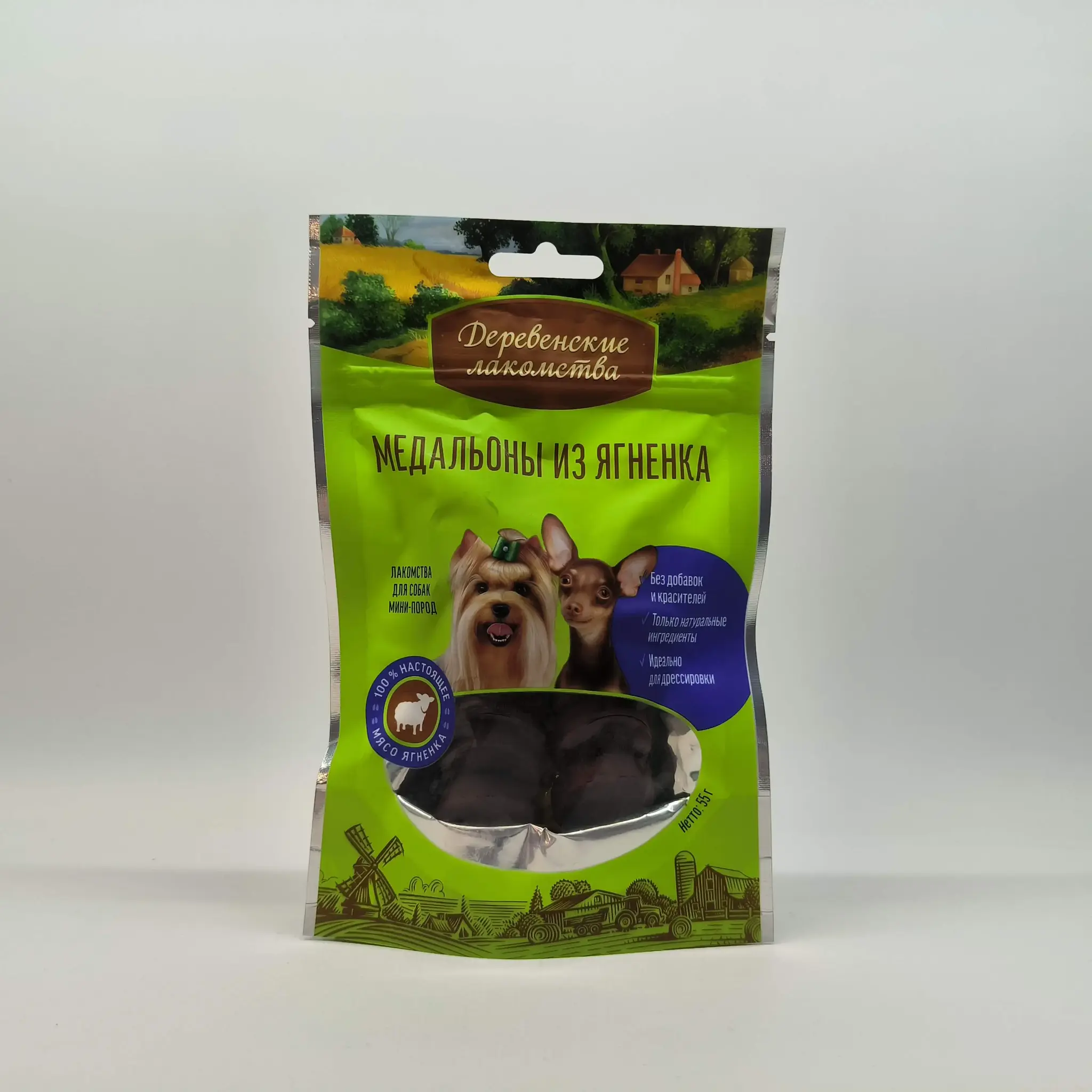 Лакомство для собак Медальоны из ягнёнка, 55г для мини-пород ДЕРЕВЕНСКИЕ ЛАКОМСТВА