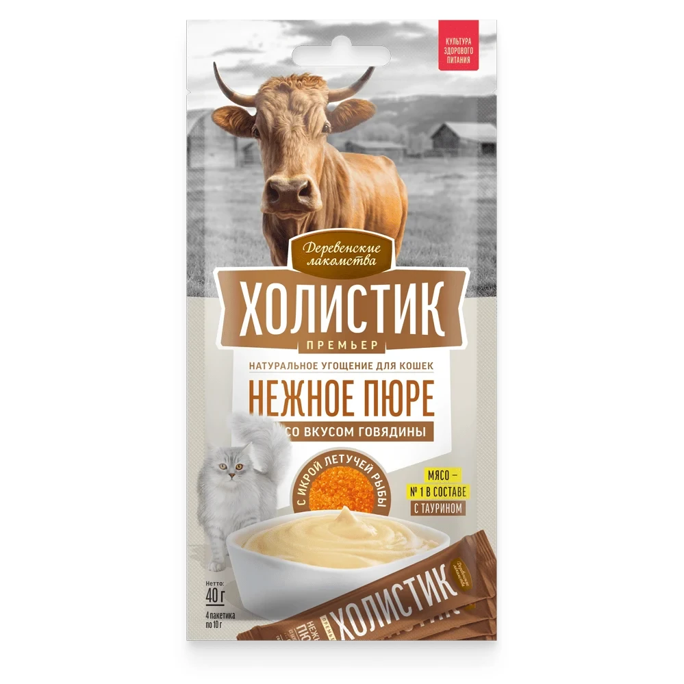 Нежное пюре со вкусом говядины Холистик премьер, Деревенские лакомства 40г