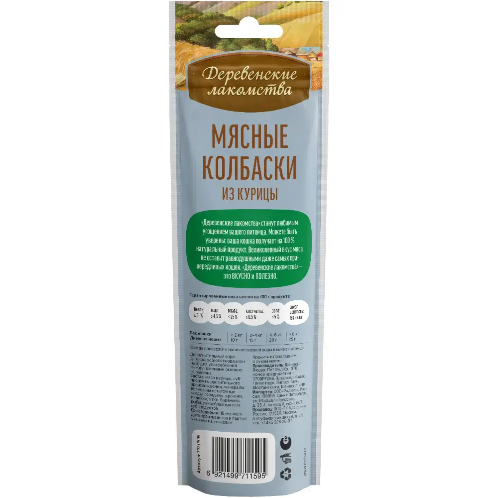 Мясные колбаски из курицы, 45г лакомства для кошек Деревенские лакомства