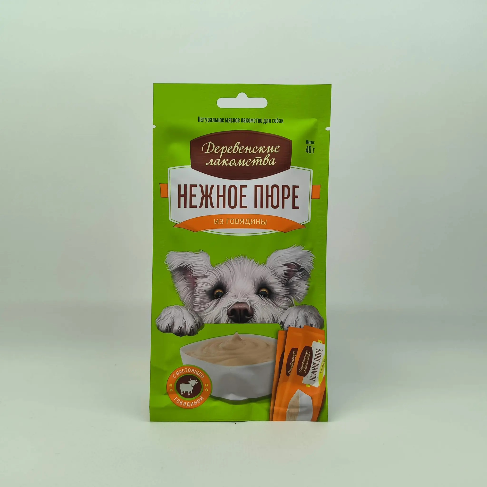 Нежное пюре из говядины, 40г лакомства для собак Деревенские лакомства