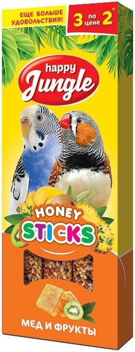 Палочки Happy Jungle для экзотических птиц мед+фрукты, 3шт,