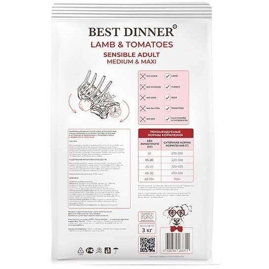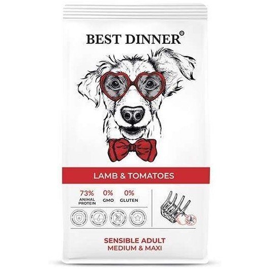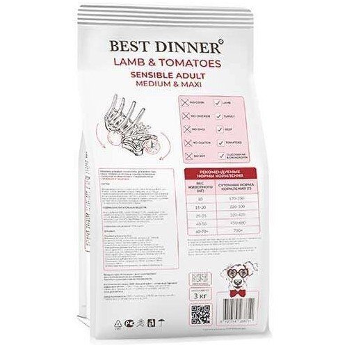 Сухой корм для собак крупных и средних пород Ягнёнок с томатами, Best Dinner Adilt Sensible Medium & Maxi Lamb & Tomatoes, 15кг
