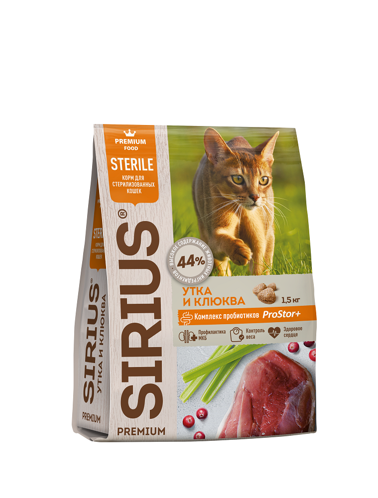 Сухой корм для стерилизованных кошек утка с клюквой SIRIUS, 10 кг