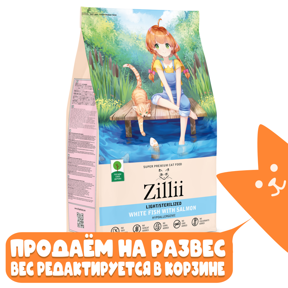 Сухой корм для взрослых кошек с избыточным весом и стерилизованных Белая Рыба с Лососем ZILLII РАЗВЕСНОЙ