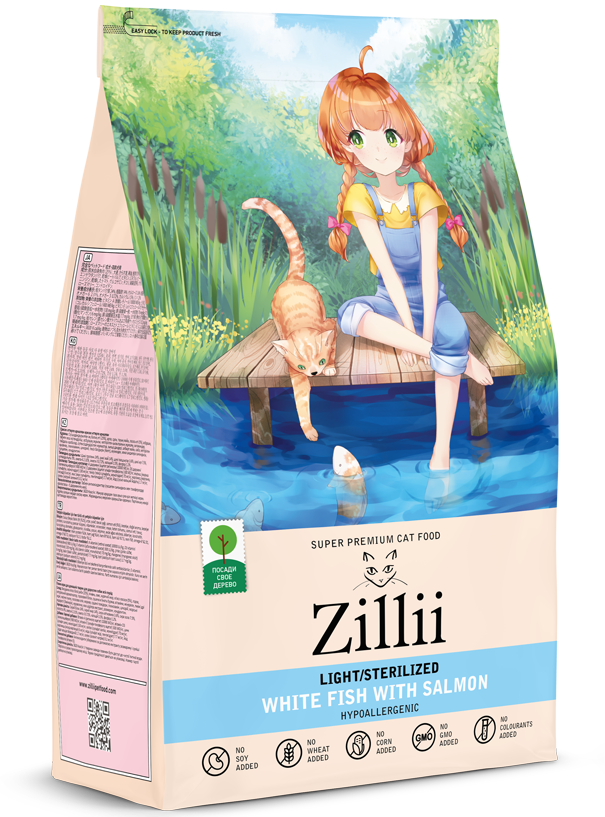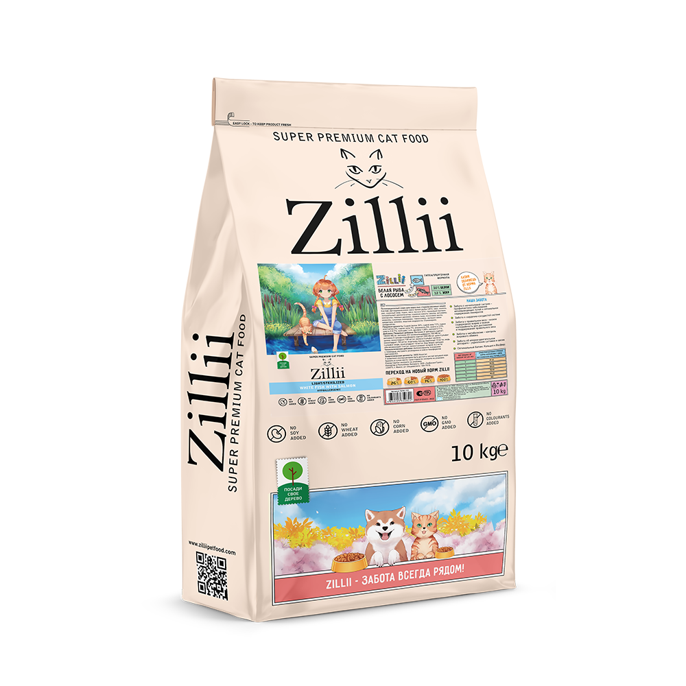 Сухой корм для взрослых кошек с избыточным весом и стерилизованных Белая Рыба с Лососем 10 кг ZILLII