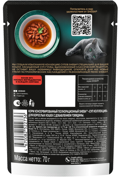 Суп с говядиной, 70г влажный корм для кошек Sheba
